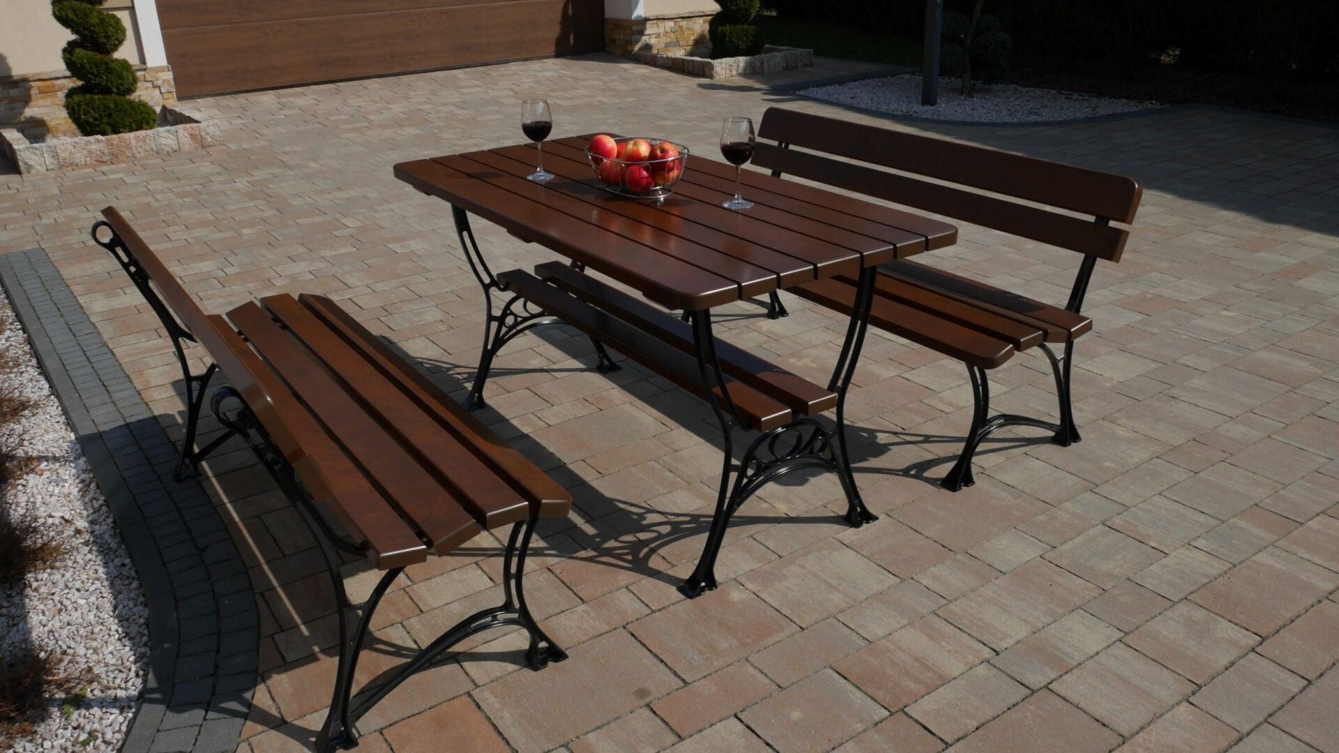 Produktbeschreibung: Gartenmöbel aus Holz mit Aluminiumrahmen für 6 Personen in der Farbe Walnuss