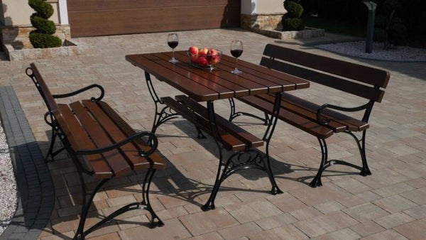 Langlebige und witterungsbeständige Gartenmöbel aus Erlenholz mit Aluminiumrahmen, geeignet für sechs Personen. Verfügbar mit oder ohne Armlehne, das Holz ist zweifach imprägniert, um höchsten Komfort zu gewährleisten.