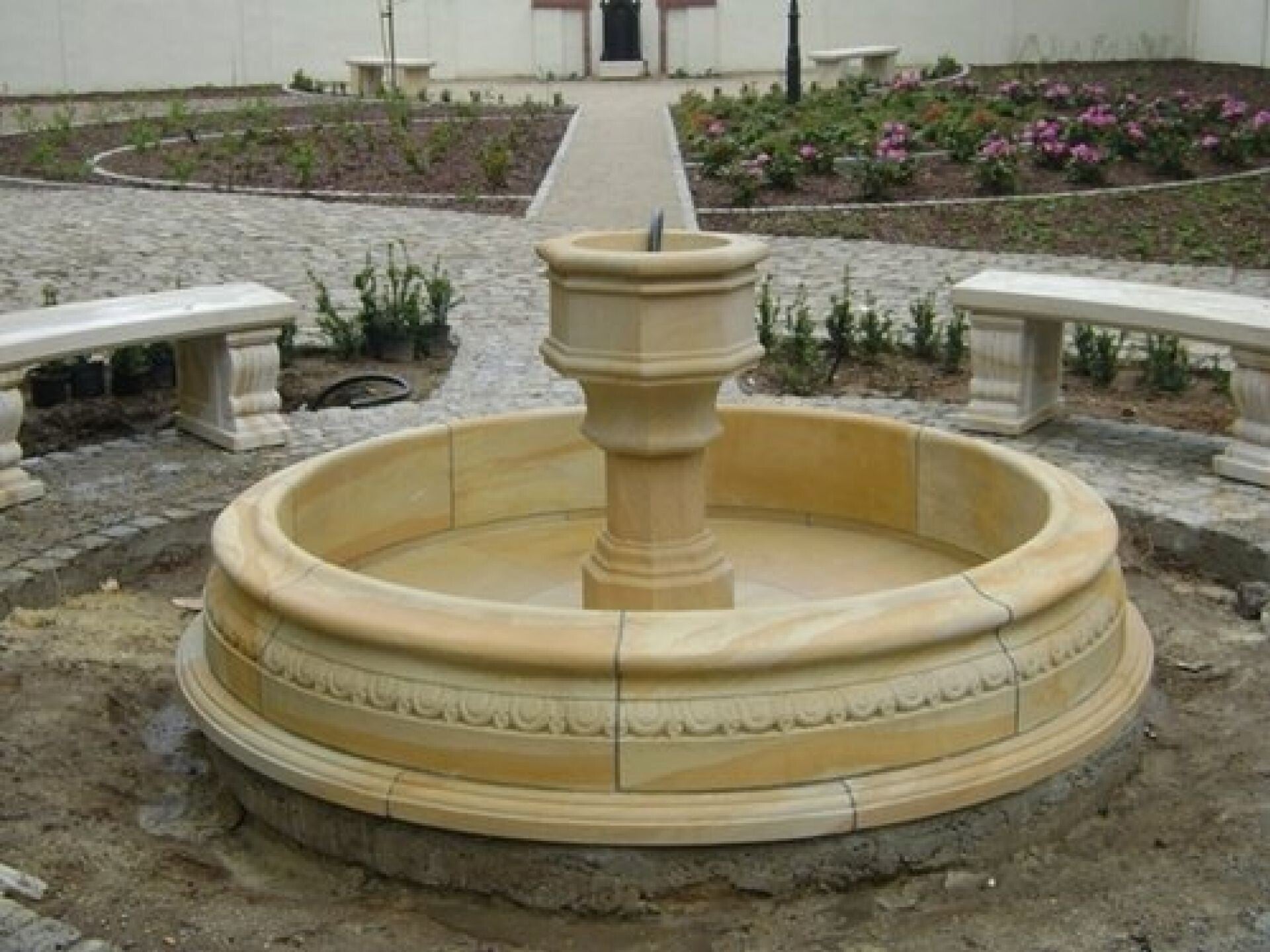 Produktbeschreibung: Brunnen aus Sandstein für den Park mit einem Reservoir H 90 cm