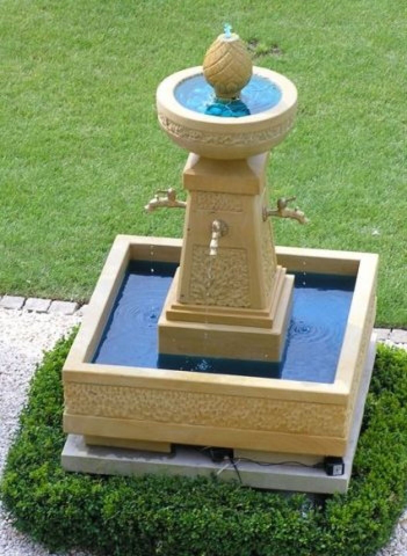 Exklusiver Sandsteinbrunnen mit Beleuchtung H 130 cm