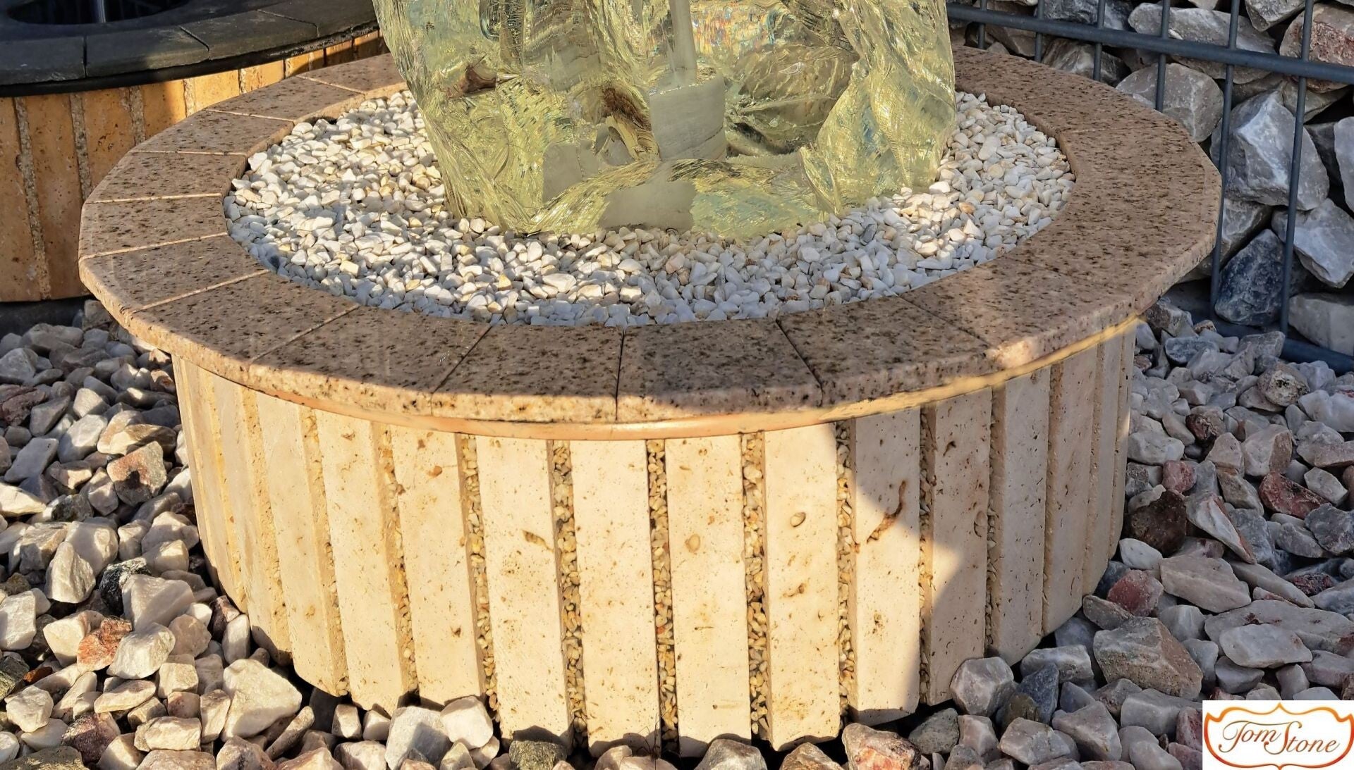 Produktbeschreibung: Wasserreservoir für die Brunnenquelle, umhüllt mit einer Verkleidung aus Naturstein