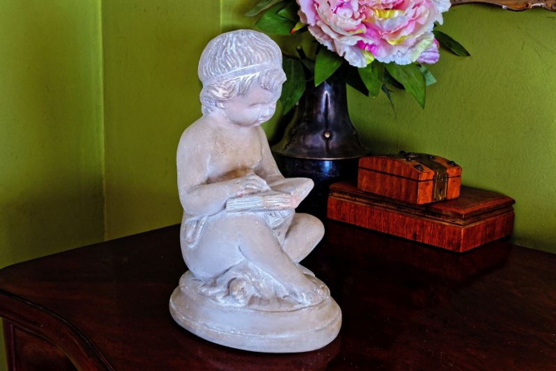 Produktbeschreibung: Das Mädchen schreibt in der Gartenszene