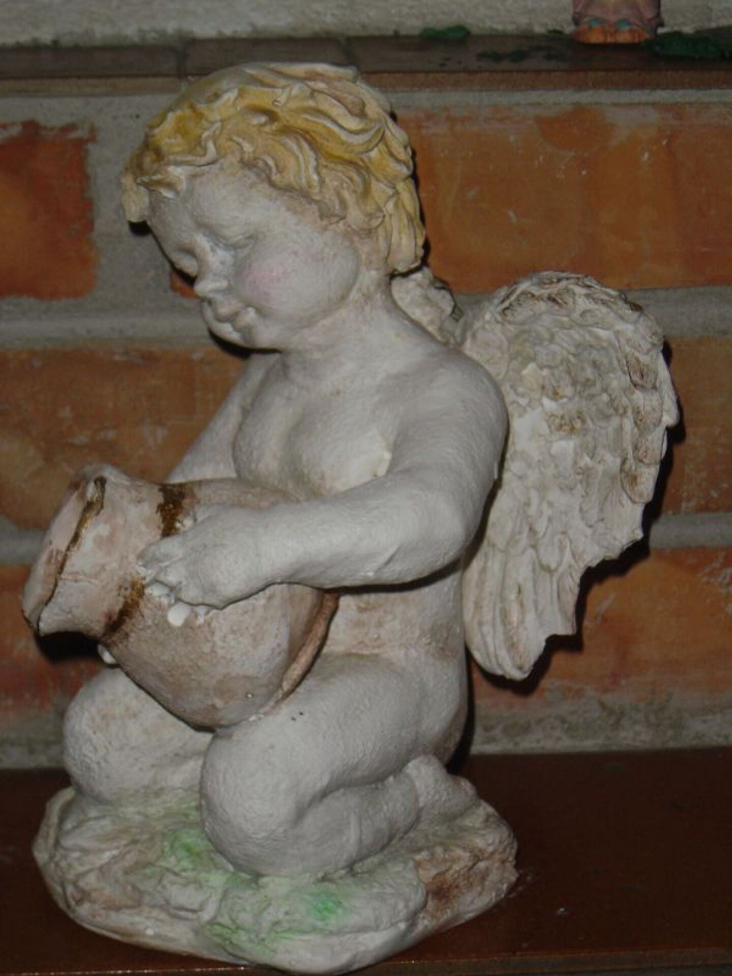 Produktbeschreibung: Sitzt steinengel neben einem Krug