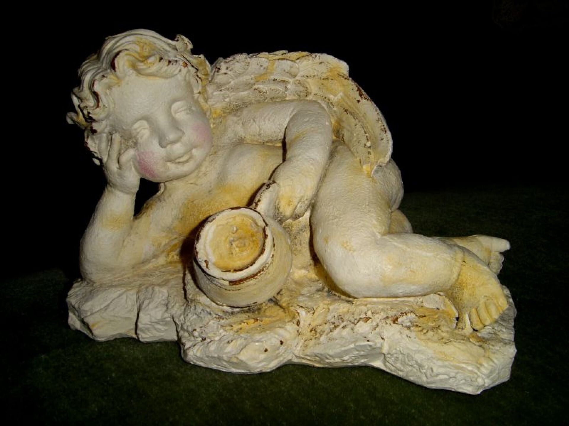 Produktbeschreibung: Steinfigur liegenden Engel mit einem Krug darstellt
