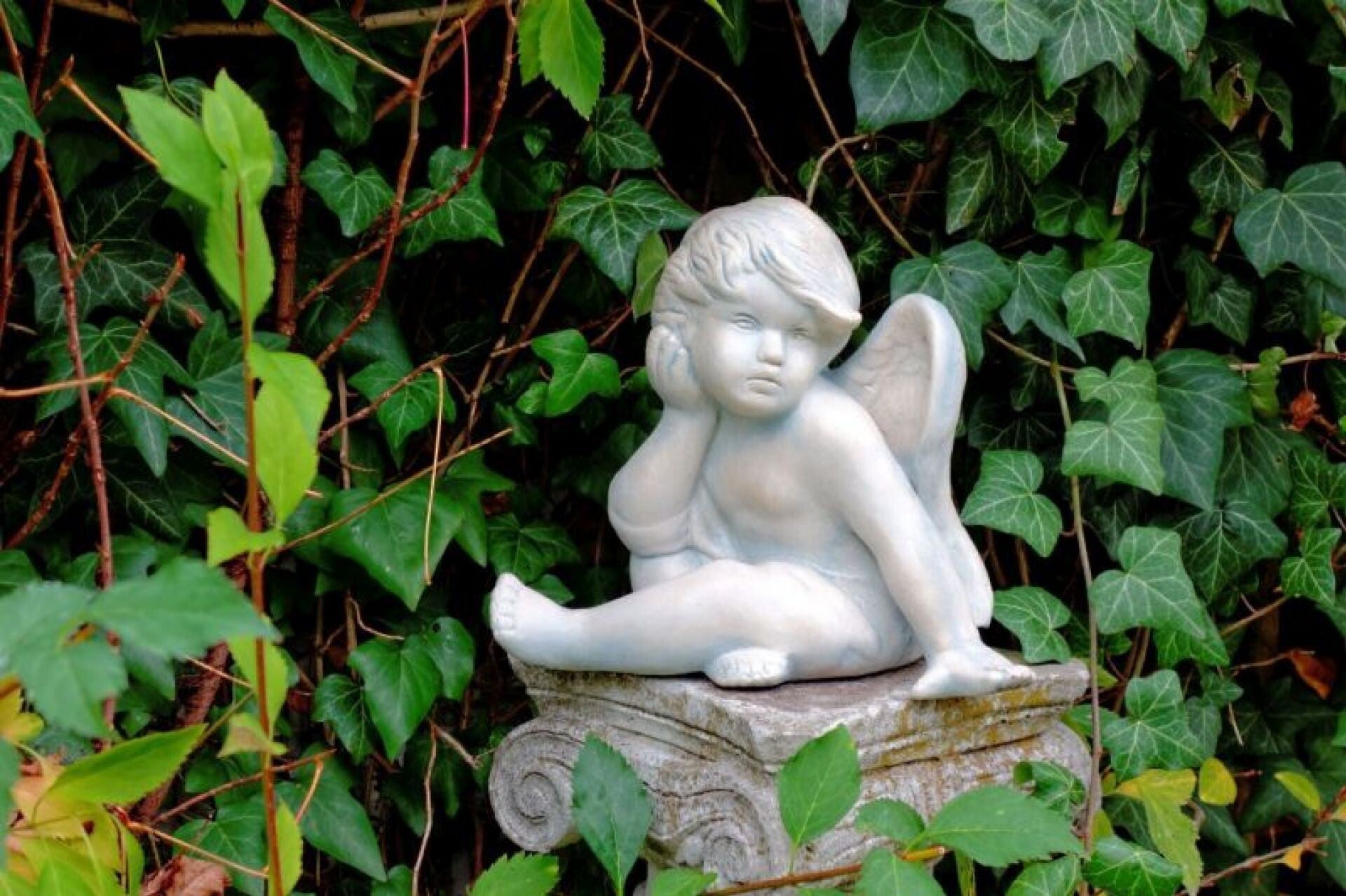 Produktbeschreibung: Steinfigur sitzenden Engel darstellt H 26 cm