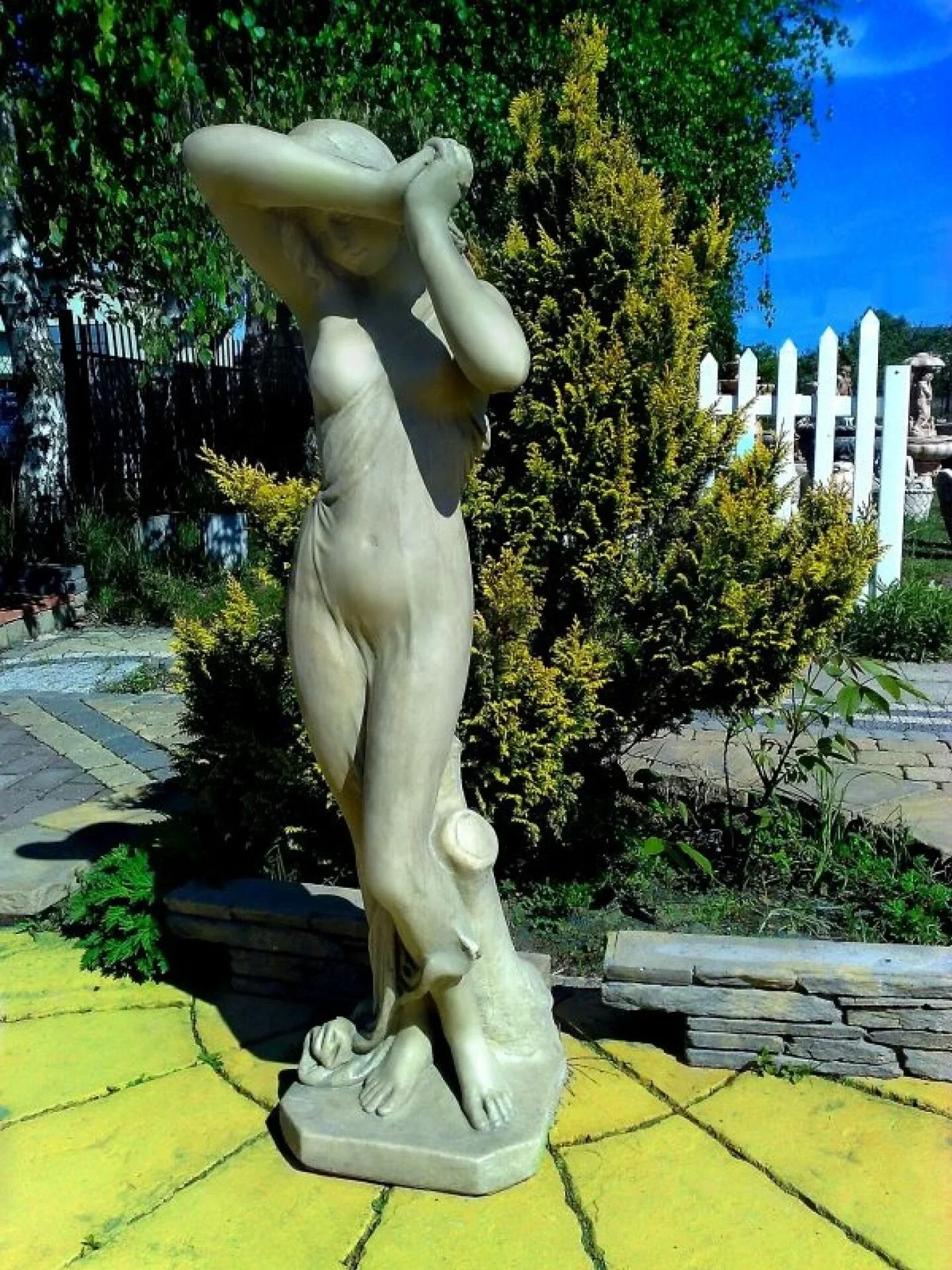 Steinfigur einer Frau sich mit ihrem Arm bedeckt