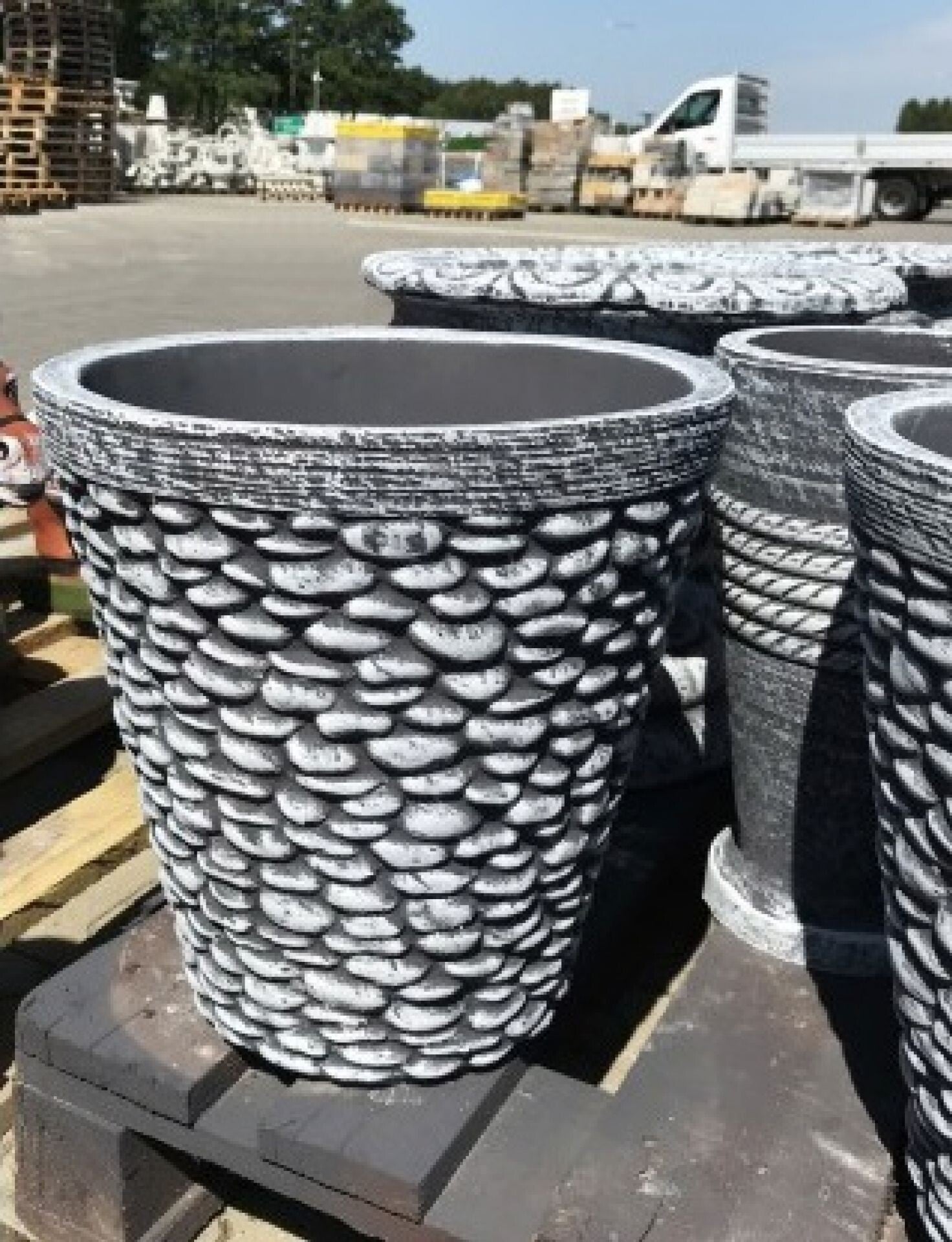 Produktbeschreibung: Blumentopf mit geschnitztem Kies