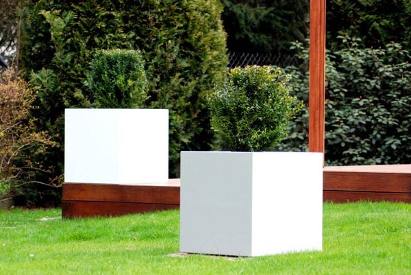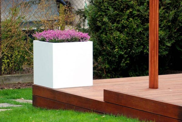Würfelförmiger Blumentopf für die Terrasse H 100 cm
