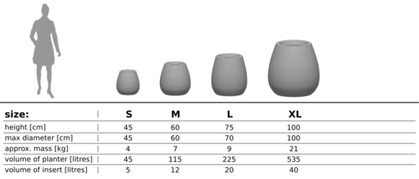 Die Verbundwerkstoffe, aus denen unsere Töpfe gefertigt sind, zeichnen sich durch ihre hohe Beständigkeit gegenüber Wasser, Sonne, niedrigen und hohen Temperaturen aus. Sie sind auch resistent gegen Schimmel, Pilze, Insekten und andere biologische Einflüsse. Unsere Produkte werden Ihnen viele Jahre lang Freude bereiten, ohne dabei ihren Glanz und ihre Schönheit zu verlieren. Die äußere farbige Schicht unserer Gartentöpfe, bekannt als Gelcoat, ist dick, äußerst hart und langlebig, was einen hervorragenden Schutz vor Beschädigungen bietet. Dies stellt einen bedeutenden Vorteil gegenüber anderen Produkten dar, die oft lackiert oder sogar aus Polyethylen gefertigt sind und daher leicht verkratzen können. Durch die spiegelnde Oberfläche und die perfekte Glätte unserer KAMA-Blumenprodukte wird die Ablagerung von Verunreinigungen erheblich reduziert. Die Pflanzen können entweder direkt in die Töpfe gesetzt oder optional in spezielle Einsätze gepflanzt werden, die die Pflege erleichtern. Unsere Produkte sind in acht Designs, fünf Höhen und vier Standardfarben erhältlich, um eine perfekte Anpassung an die natürliche Umgebung, die Terrassenausstattung oder den Fassadenstil zu ermöglichen.