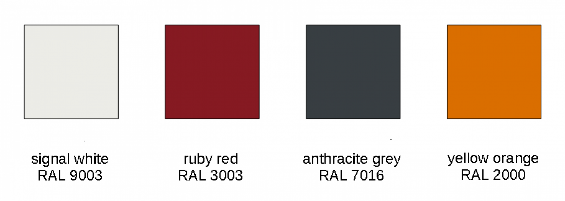 Bitte geben Sie in den Bestellhinweisen die Farbe wie folgt an: 1. Rubin, 2. Anthrazit, 3. Gelb-Orange, 4. Signalweiß, 5. Silber-Metallic.