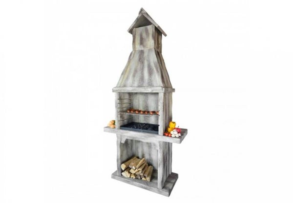 Produktbeschreibung: Holzimitierter Betongrill mit Dach