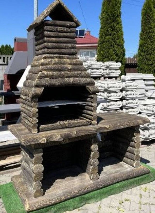 Produktbeschreibung: Betongrill imitiert Baumstämme