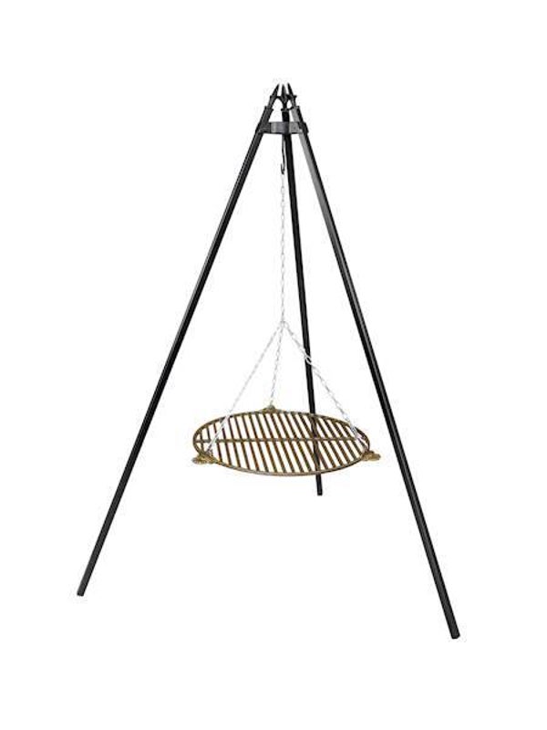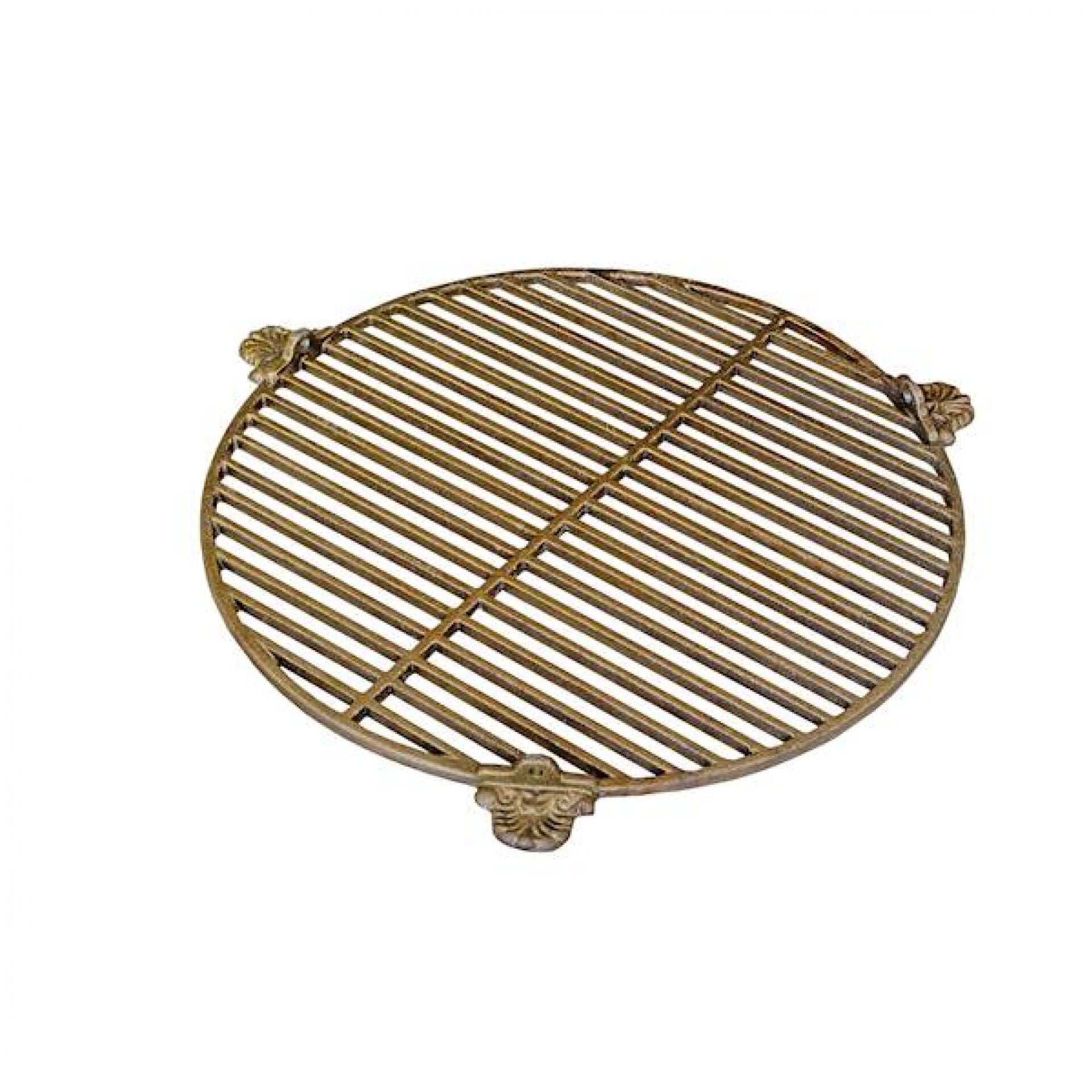 Ein Grillrost aus Gusseisen, kreisrund geformt, ist flexibel einsetzbar: Er kann entweder auf einem Stativ platziert oder über den Grill gehängt werden und verfügt über spezielle Löcher für die Befestigung der Kette. Vor dem Gebrauch wurde er mit Speiseöl bei hoher Temperatur eingebrannt.