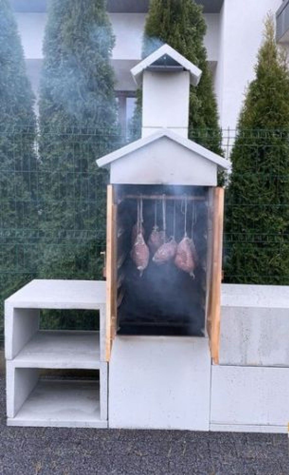 Grill aus Beton mit einer angeschlossenen Räucherkammer