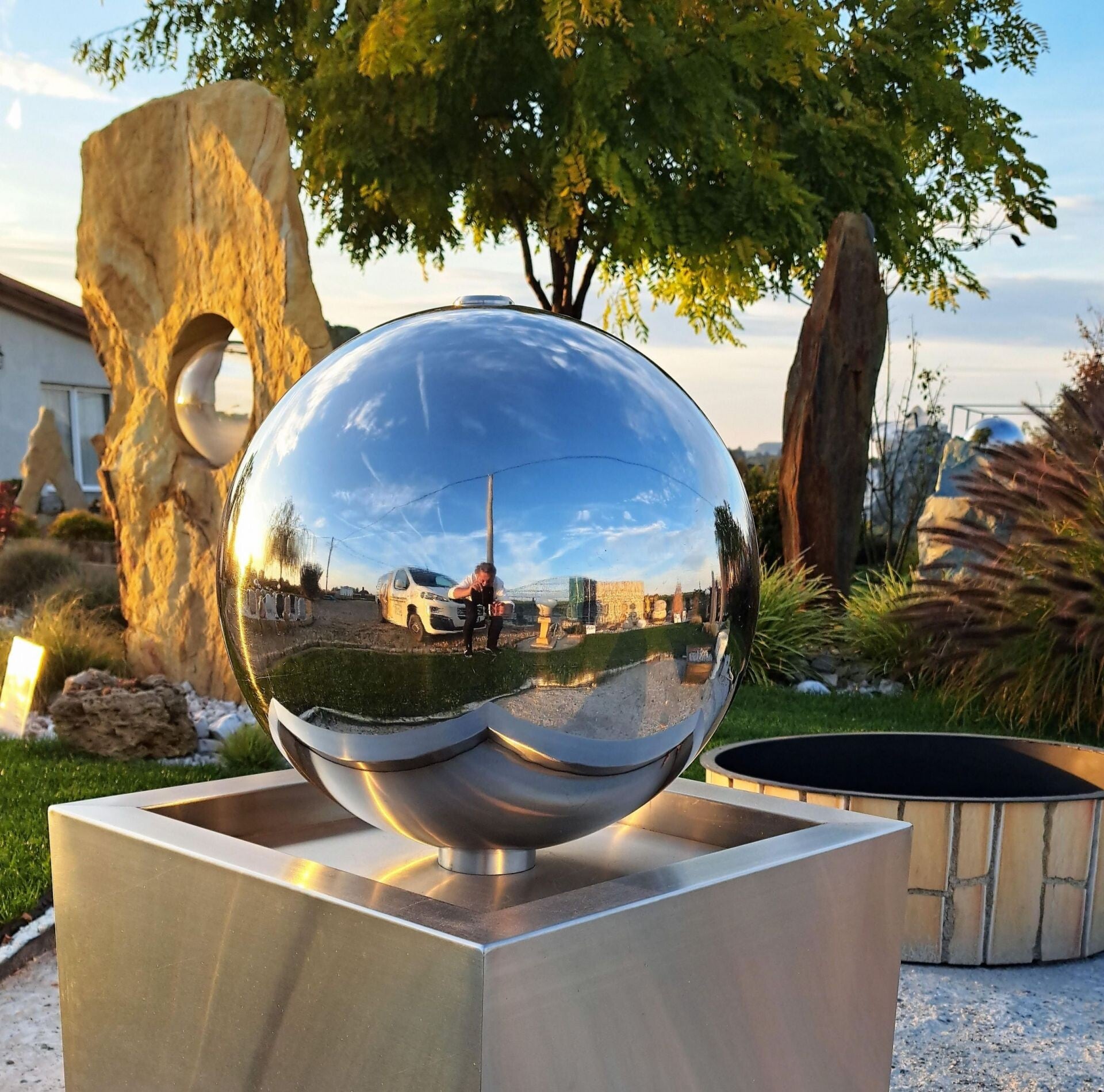 Kugelbrunnen in verschiedenen Durchmessern verfügbar: 30 cm, 40 cm, 50 cm.