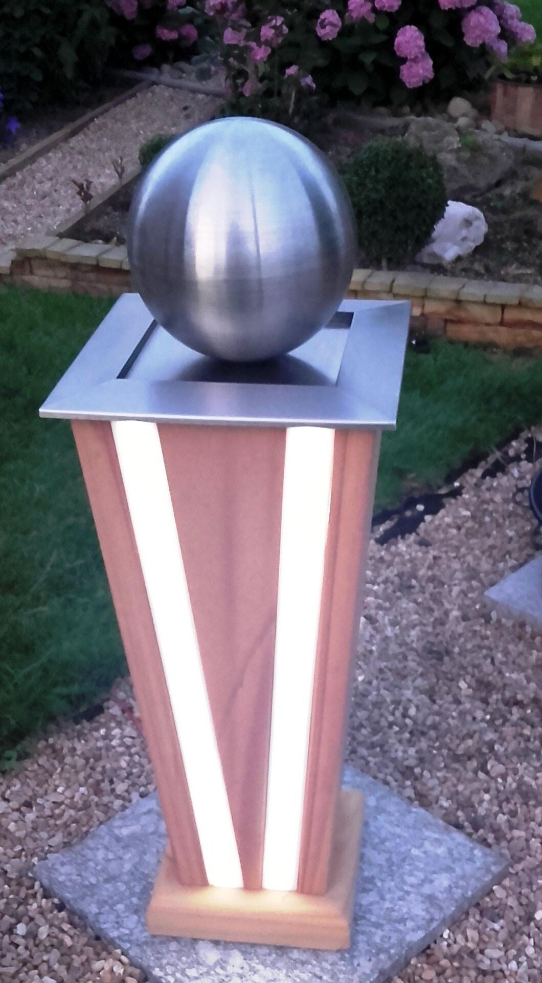 Produktbeschreibung: Säulenbrunnen mit einer polierten Springbrunnenkugel 90 cm