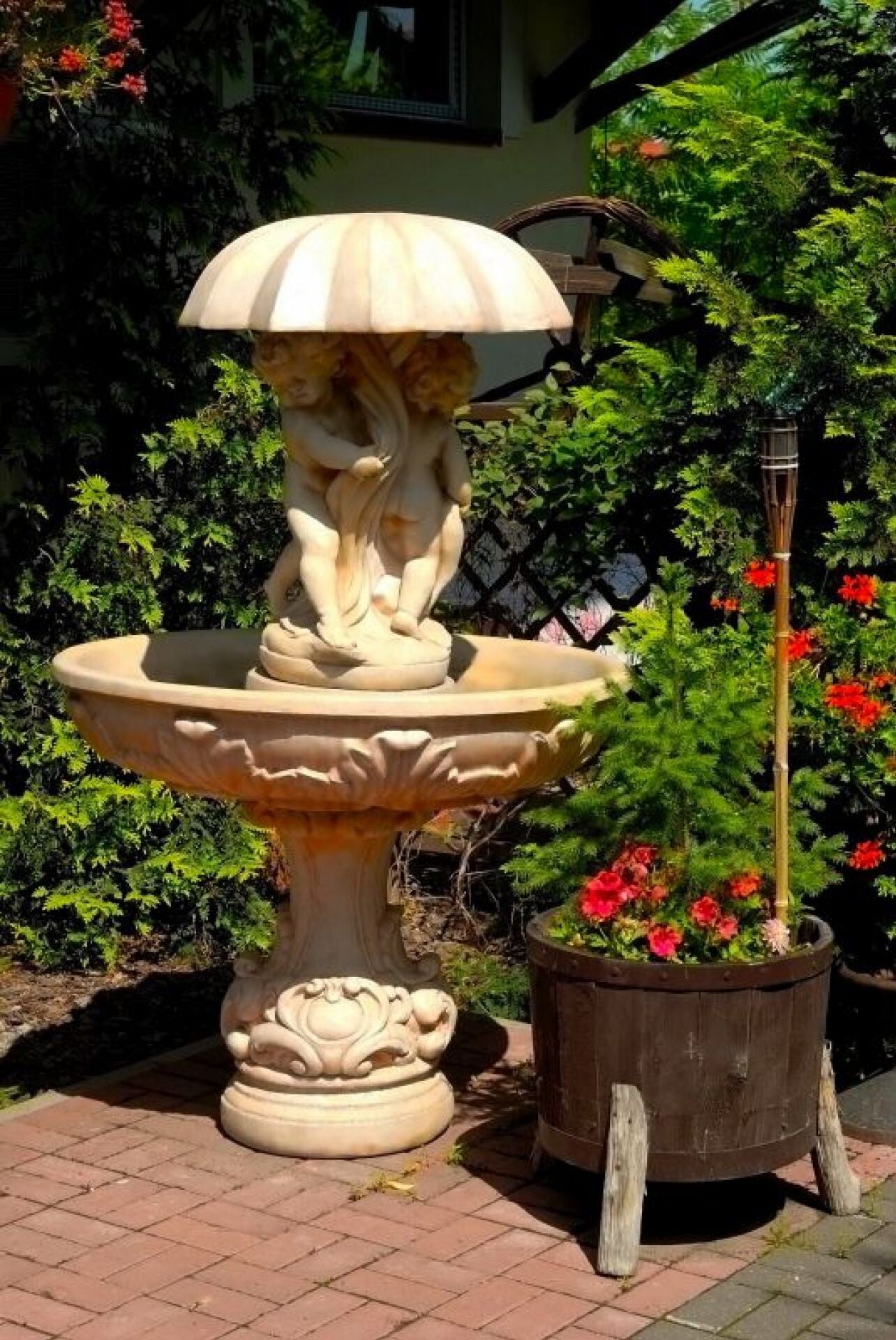 Im Preis des Springbrunnens sind der Springbrunnendüsenring, das Wasserreservoir und die Beleuchtung nicht enthalten.