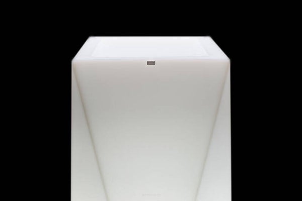 Die geometrische Form der beleuchteten Nevis-Blumentöpfe in milchigem Weiß schafft einen beeindruckenden Kontrast zur natürlichen Schönheit der Pflanzen. Dieses außergewöhnliche Produkt eignet sich daher besonders als dekoratives Element für Innenräume, Terrassen und Gärten. Eine subtile Beleuchtung in kühlen Farbtönen hebt die Eleganz des Grüns noch stärker hervor. Der 75 cm hohe Blumentopf dient zudem perfekt als stilvolle und zugleich außergewöhnliche Lichtquelle.
