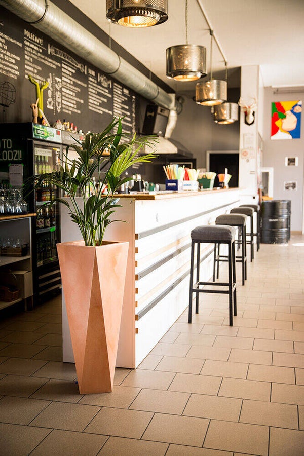Entdecken Sie die Eleganz der Geometrie mit ein Rossa-Topf in einer Farbe, die Terrakotta imitiert. Dieser präzise gefertigte, 90 cm hohe Kübel bringt die Schönheit sowohl größerer als auch kleinerer Pflanzen perfekt zur Geltung. Das schlanke, moderne Design verleiht jedem Innenraum eine stilvolle Note und wird zu einem einzigartigen Gestaltungselement in offenen Räumen. Kombinieren Sie Funktionalität mit raffinierter Eleganz und schaffen Sie eine harmonische und unverwechselbare Atmosphäre.