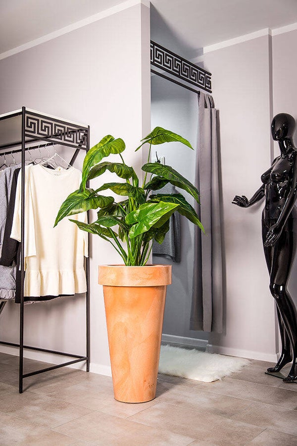 Die Pflanzgefäße Pons in terrakottaähnlichem Farbton mit einer Höhe von 75 cm vereinen ein modernes, ansprechendes Design mit außergewöhnlicher Funktionalität und sind die ideale Wahl für alle, die Wert auf Individualität legen. Sie eignen sich hervorragend als originelle Vasen für kreative Pflanzenarrangements und bringen auf faszinierende Weise Leben in die Dekoration von Innenräumen sowie grünen Flächen.