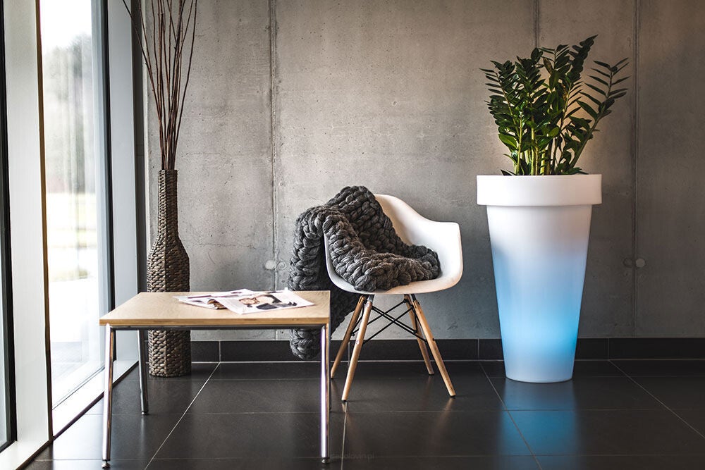Die leuchtenden Pflanzgefäße Pons in der LED-RGB-Variante eignen sich hervorragend als originelle Lampen für das Wohnzimmer oder als dezente, moderne Beleuchtung für Büroräume. Die breite Palette von 16 Lichtfarben, die bequem mit einer kabellosen Fernbedienung gesteuert werden können, eröffnet unendliche Gestaltungsmöglichkeiten. Die subtile Beleuchtung der Pflanzgefäße schafft in jedem Raum eine einzigartige, magische Atmosphäre. Mit ihrem modernen Design und einer Höhe von 90 cm sind sie die ideale Wahl für alle, die nach außergewöhnlichen Dekorationselementen suchen.