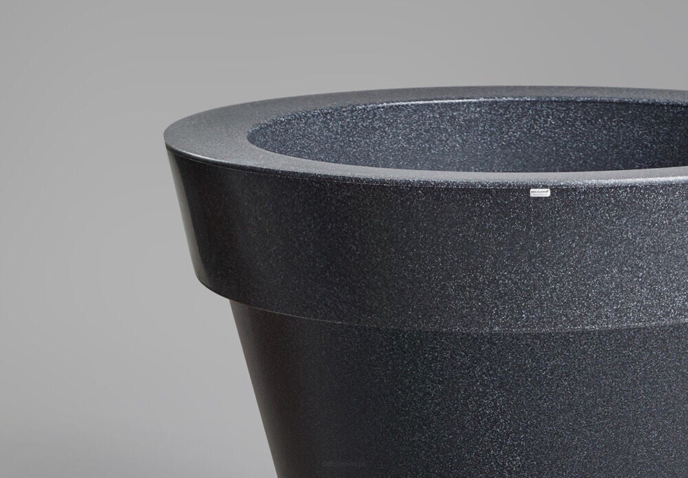 Die klassischen, schlichten und großen Pflanzkübel Grande in einer dunklen Marmoroptik ergänzen perfekt jede weitläufige Fläche. Diese eleganten und funktionalen Pflanzbehälter mit einer Höhe von 75 cm und einem Durchmesser von 88 cm verleihen der Umgebung durch ihr minimalistisches Design eine edle Note. Mit ihren imposanten Maßen eignen sie sich hervorragend als Gartenkübel, für Terrassen oder als Dekoration für gewerbliche Objekte. Dank ihrer besonderen Eigenschaften finden sie auch als Stadt- oder Parkpflanzkübel perfekten Einsatz. Grande betonen auf wunderbare Weise die Schönheit der Pflanzen, die in ihnen platziert werden.