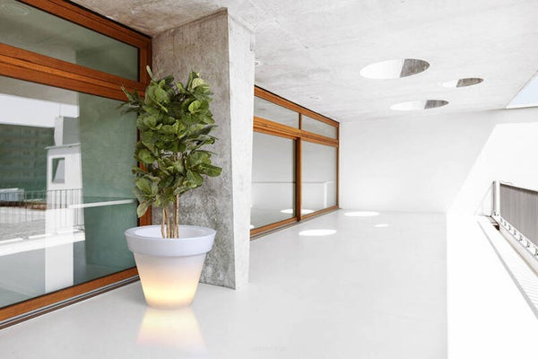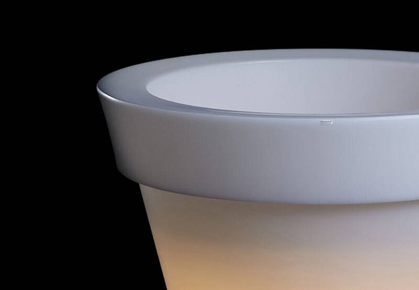Die großen leuchtenden Pflanzkübel Grande mit einer Höhe von 75 cm und einem Durchmesser von 88 cm, die mit einer Beleuchtung in warmem Licht ausgestattet sind, werden jedes Innenraum oder offene Fläche auf faszinierende Weise schmücken und zum Leben erwecken. Ihr zeitloser Entwurf passt perfekt in Büros und Dienstleistungsräume, moderne Einrichtungen sowie traditionellere Interieurs. Die leuchtenden Pflanzkübel in milchweiß lassen sich problemlos an die Bedürfnisse von Innenräumen, weitläufigen urbanen Flächen oder Einkaufszentren anpassen – sie sind wirklich für jeden Ort geeignet.