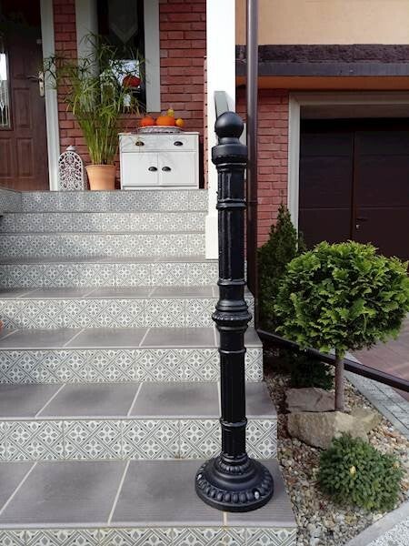 Hergestellt aus einem Stahlrohr mit Gusseisenelementen.