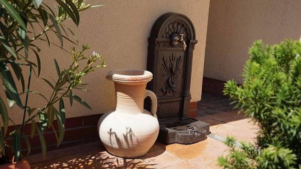 Produktbeschreibung: Außenwandbrunnen in Braun