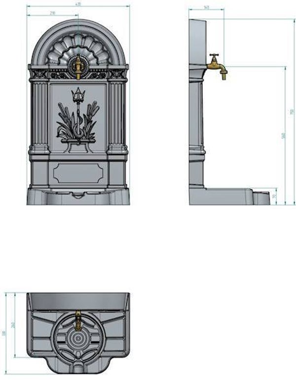 Produktbeschreibung: Außenwandbrunnen in Schwarz
