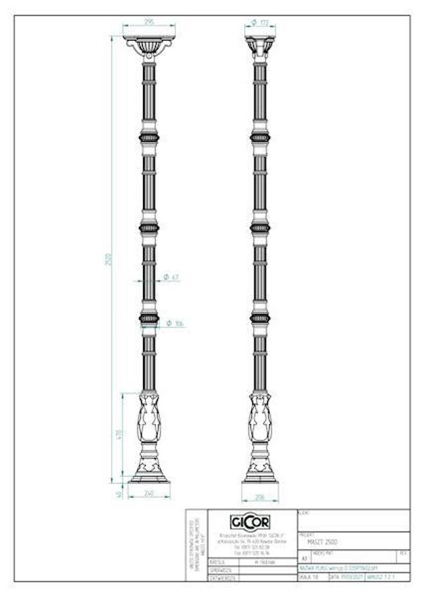 Stütze mit sechseckiger Basis H 252 cm