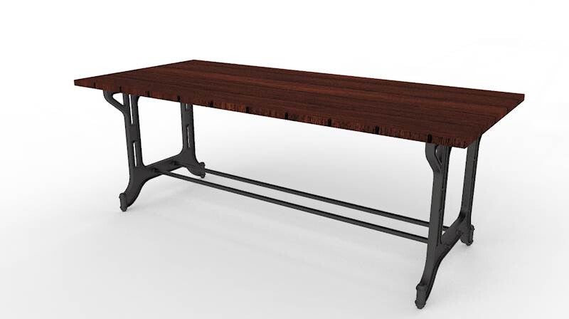 Der industrielle Stil dieses Tisches zeichnet sich durch eine schwarz pulverbeschichtete Basis aus. Der angegebene Preis gilt ohne Tischplatte.