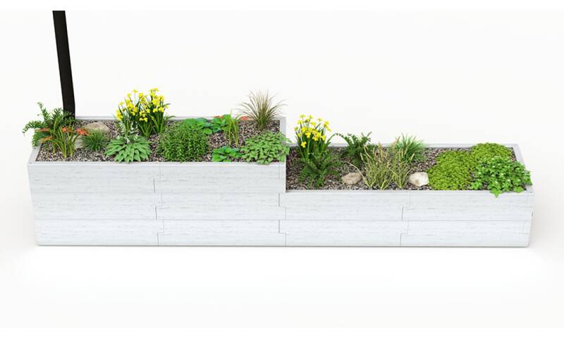 Gefertigt aus hochwertigem, stahlverstärktem Beton, bieten unsere Regenwassergärten eine hohe Beständigkeit gegenüber Witterungseinflüssen. Die Oberfläche ist in verschiedenen Designs erhältlich – darunter Holz-, Stein-, Halbholz- oder Travertin-Optik –, wodurch sich der Garten harmonisch in verschiedene Umgebungen einfügt.