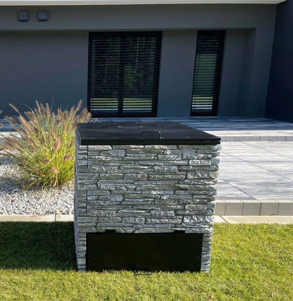 Bei Kompostern in Stein- und Travertin-Optik lässt sich der obere Deckel nur auf einer Seite öffnen.