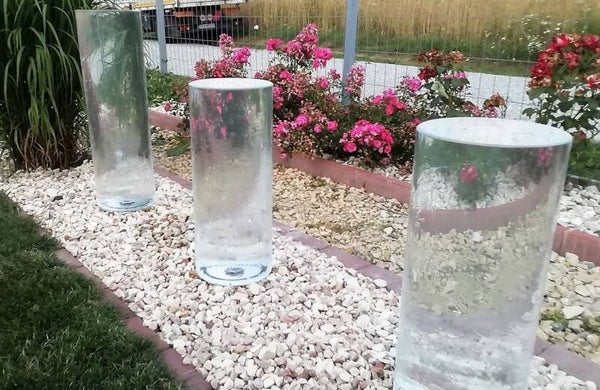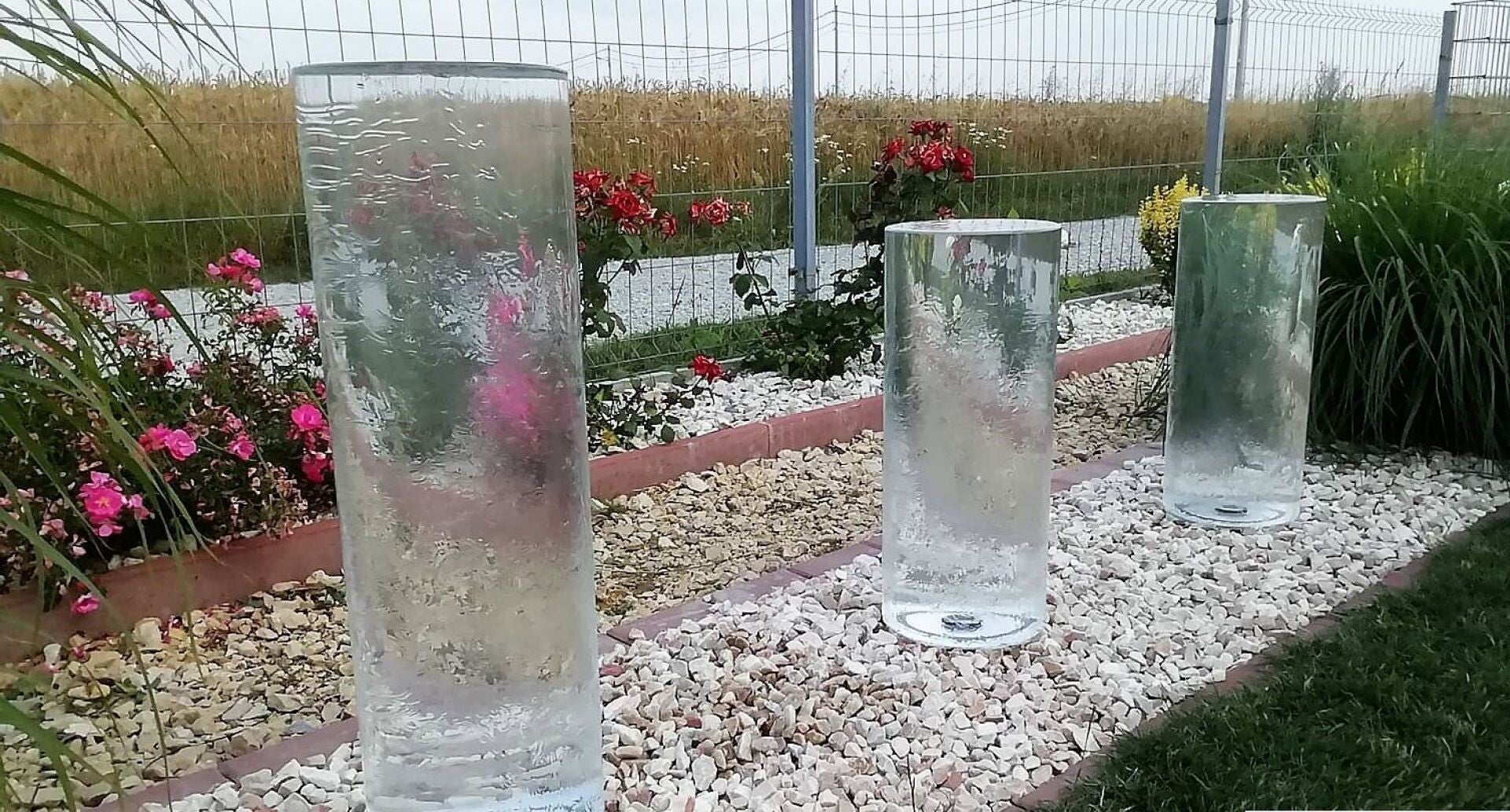 Brunnen mit gläsernen Säulen und Zylindern H 60 cm RGB-mehrfarbig